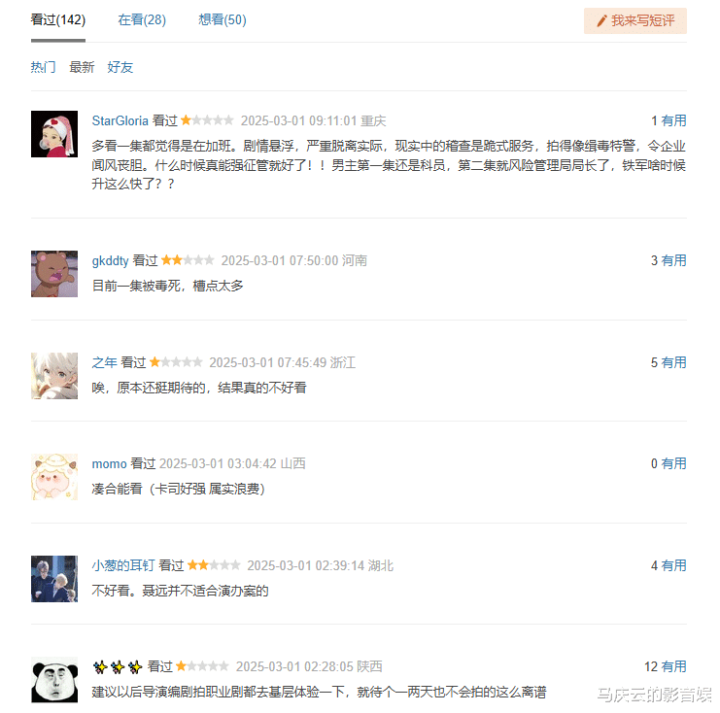 我纵览了这些好评和差评之后,个人的感受是,好评这边,给的都比较笼统,大多是说,从这部电视剧学习到了相关工作人员的辛苦,致敬等等。差评这边,则给的比较具体的。尤其是很多差评,说到了这部电视剧已经播出的内容当中,哪些是“不真实”的。当然,这是观众差评,我对税务工作不了解,不知道这部电视剧是否真实。